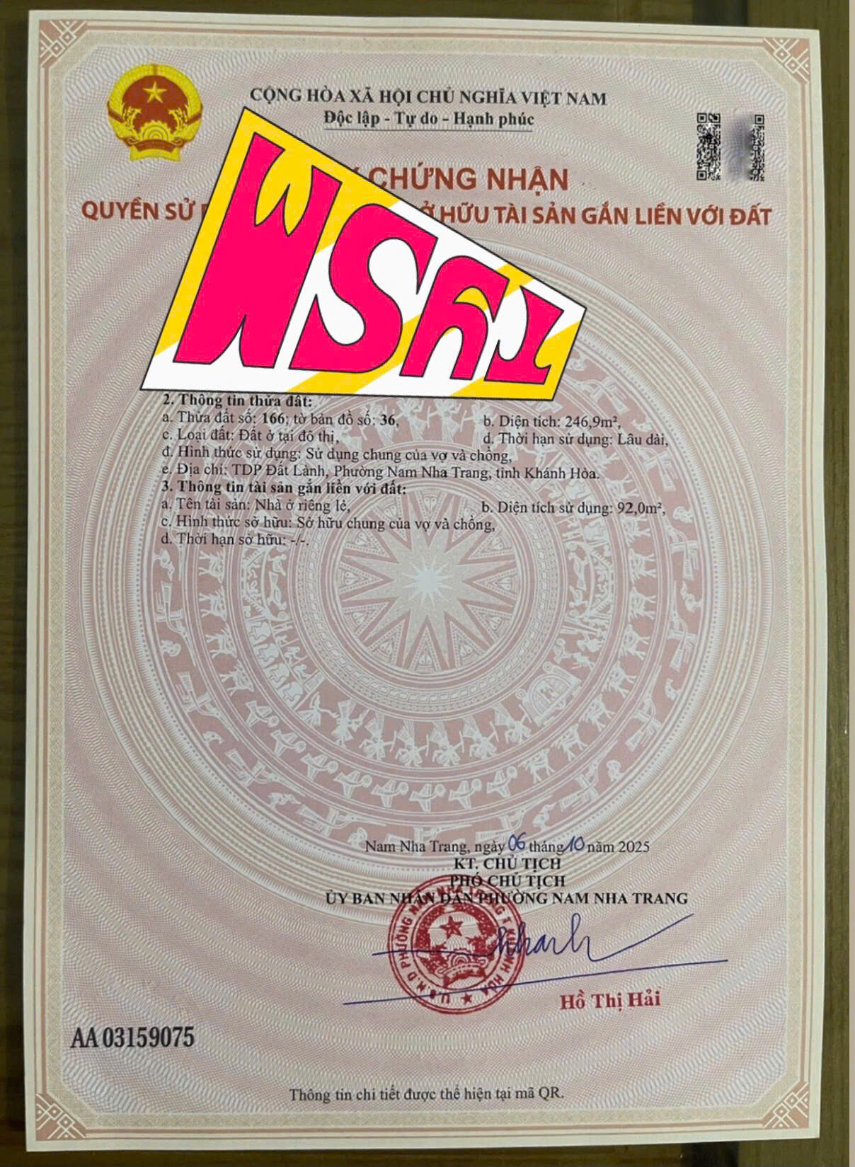 – Diện tích : 247m² ( đất ở đô thị )
